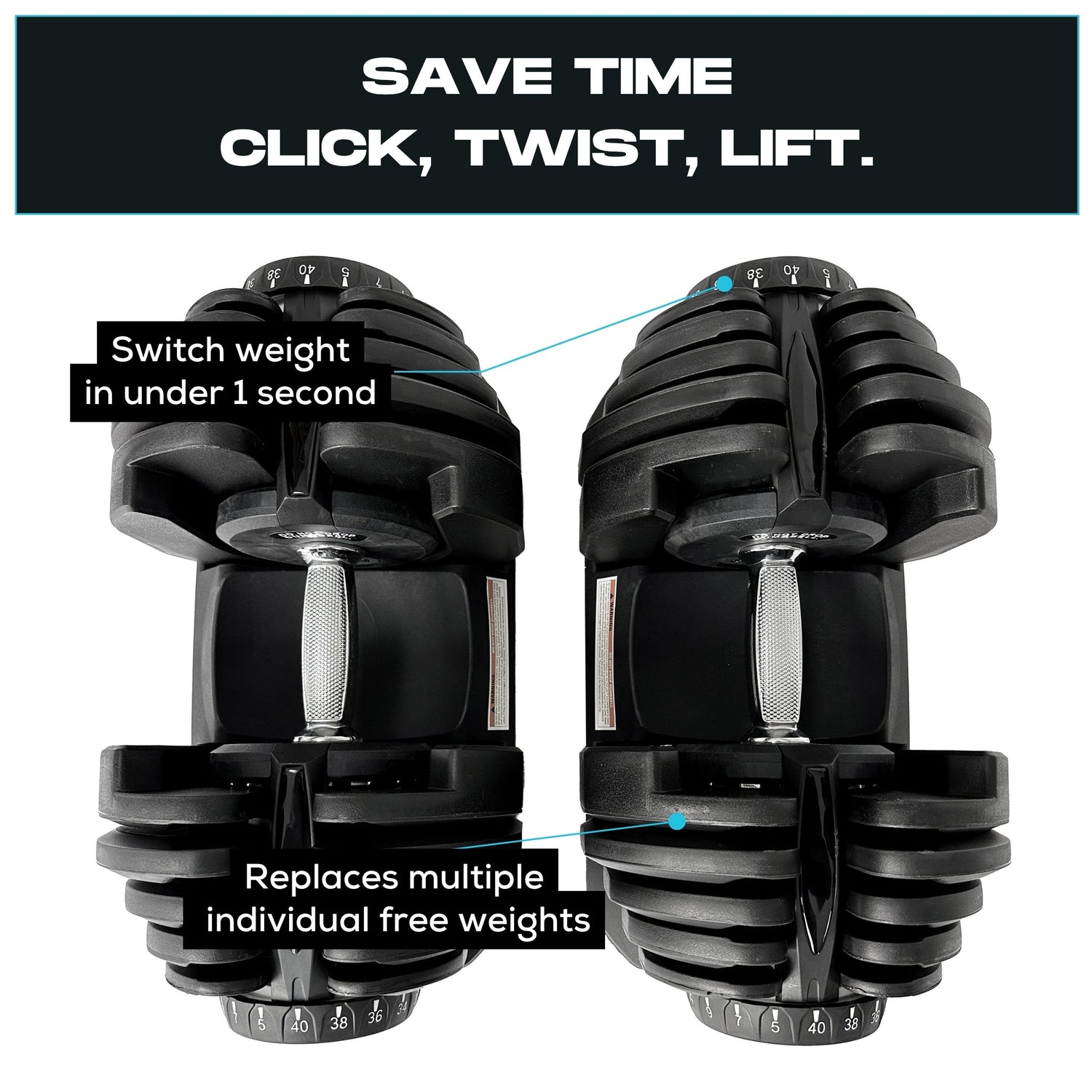These adjustable dumbbells are a fantastic addition to my home gym. The Smart Click technology makes switching weights super easy, and the stand keeps everything neat and accessible. Highly recommend!